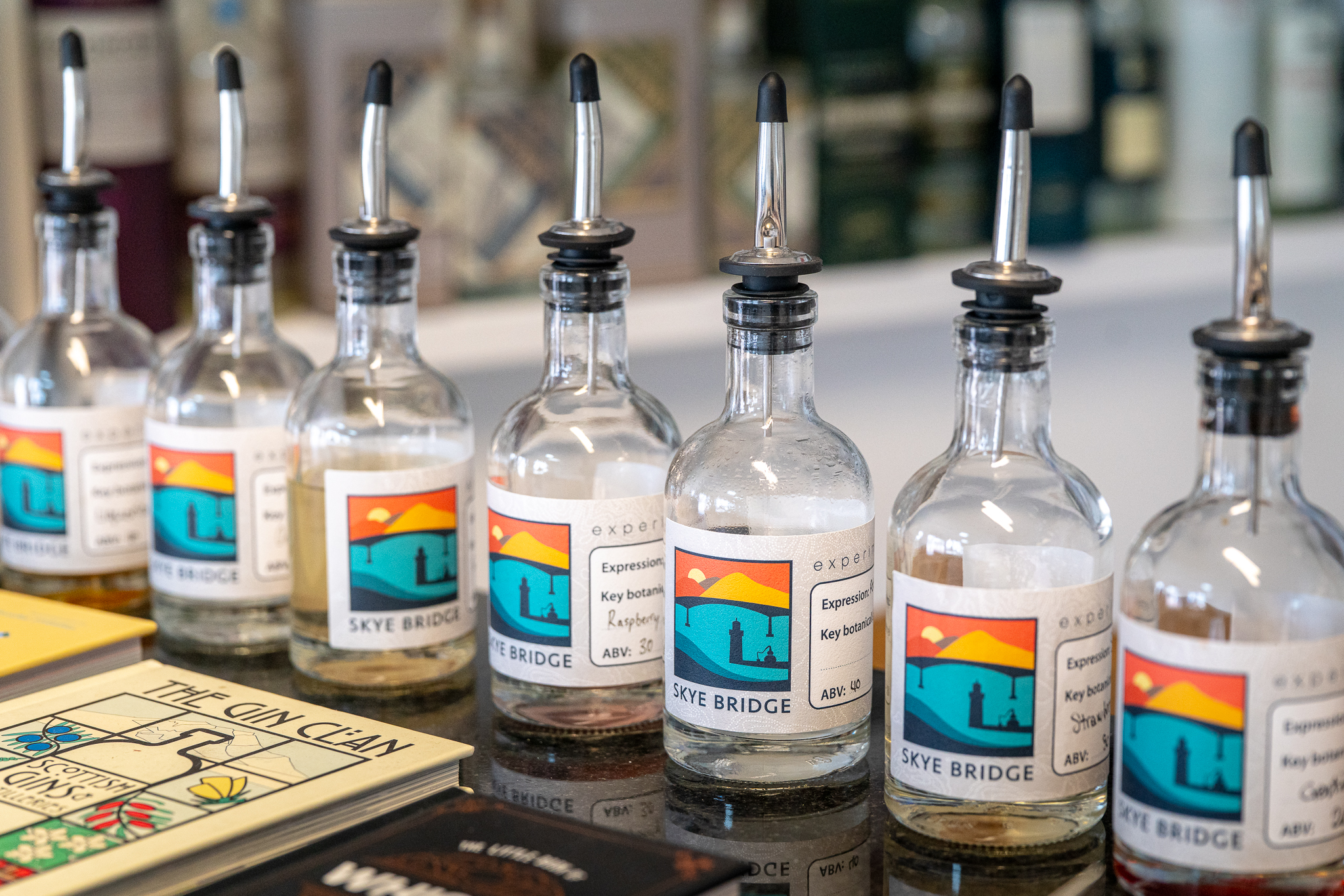 Includes 4 Spirit Samples. Skye Bridge Gin, Gin Liqueur, Single Malt Whisky, Usquebaugh.